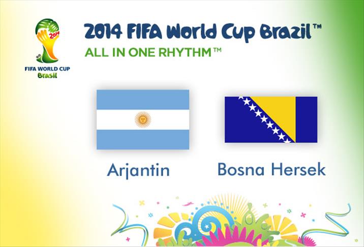 Brezilya'da düzenlenen 2014 Dünya Kupası'nda F Grubu'nda mücadele eden Arjantin ile Bosna Hersek, bugün tarihlerinde 3. kez karşı karşıya gelecek.