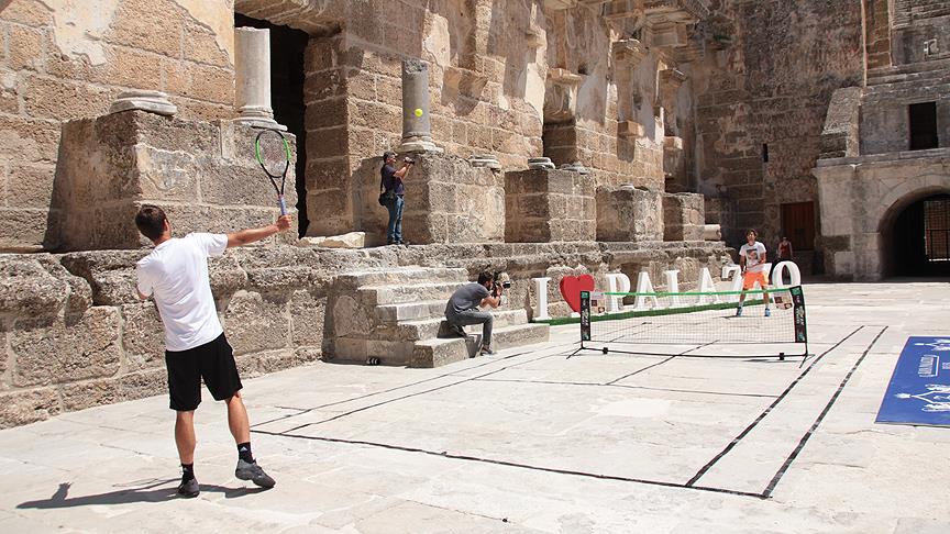 Ünlü sporcular, tarihi Aspendos Antik Tiyatrosu'nda öz çekim yaptı.