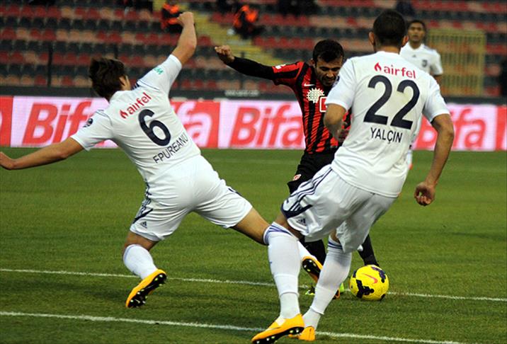 15. dakikada Eskişehirspor hücumunda Erkan'ın sol kanattan yaptığı ortada siyah-kırmızı takımdan kimse topa dokunamayınca, savurma oyuncuları meşin yuvarlağı uzaklaştırdı.