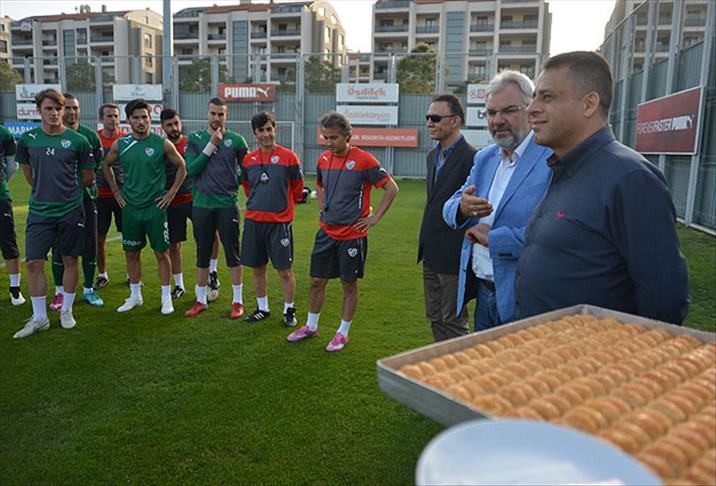 Bursa Vali Yardımcısı Ahmet Hikmet Şahin, yeşil-beyazlıların Teknik Direktör Şenol Güneş yönetiminde gerçekleştirilen antrenmanı öncesi Özlüce Tesisleri'ne gelerek, Davutoğlu'nun gönderdiği baklavaları teknik heyet ve oyunculara sundu.