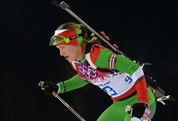 Dağ bölgesindeki Laura Biatlon Merkezi'nde gerçekleştirilen 10 kilometre takipte 29.30.7'lik derece yapan Belaruslu sporcu altın madalyanın sahibi oldu. Bu disiplinde daha önce dünya şampiyonluğu bulunan Domracheva, kariyerinde ilk olimpiyat şampiyonluğunu elde etti.