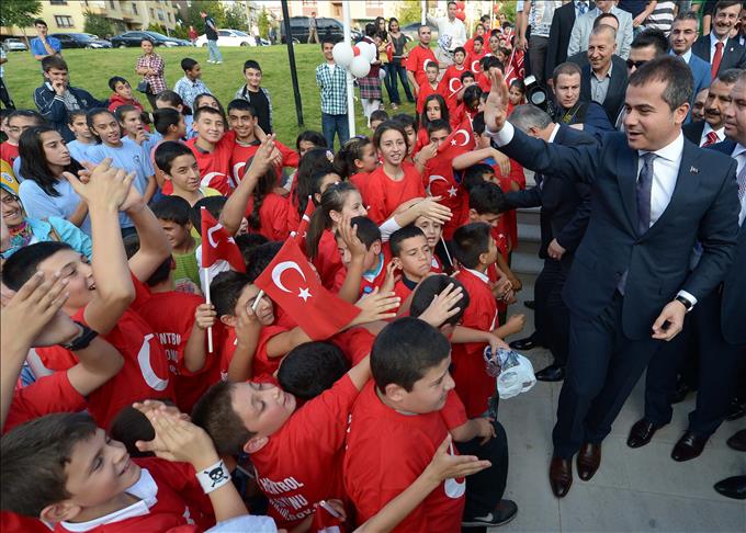 Hentbol Federasyonu Spor Salonu'nun açılışını yapan Gençlik ve Spor Bakanı Suat Kılıç, tören alanına gelişinde kendisini karşılayan öğrencilerle bir süre sohbet etti.