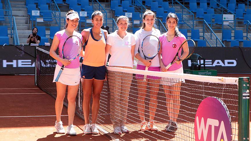 TEB BNP Paribas İstanbul Cup Uluslararası Kadınlar Tenis Turnuvası'nda geçen yıl teklerde şampiyonluğa ulaşan Çağla Büyükakçay ile çiftlerde zafere ulaşan İpek Soylu, karşılaşma sonrasında genç tenisçilerle tecrübelerini paylaştı.