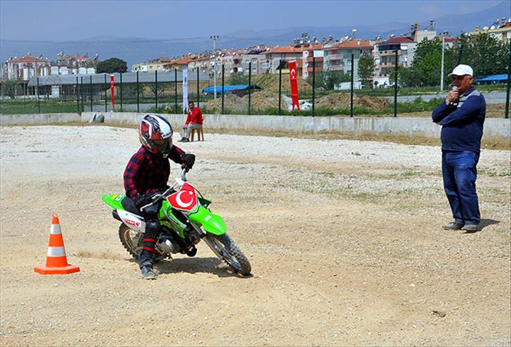 Türkiye Motosiklet Federasyonu'nca (TMF) başlatılan çalışma kapsamında, İzmir'de 8-12 yaş arası çocuklara motosiklet sürüş eğitimi veriliyor.