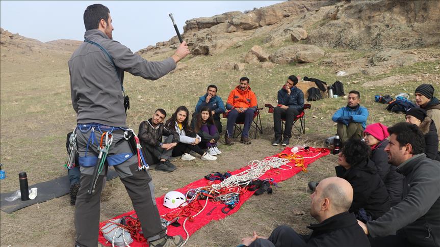 Iğdır'da bir araya gelen gönüllü doğa sporcuları, bölgede doğa sporlarını canlandırmak için bu spora merak duyanlara doğada eğitim veriyor.