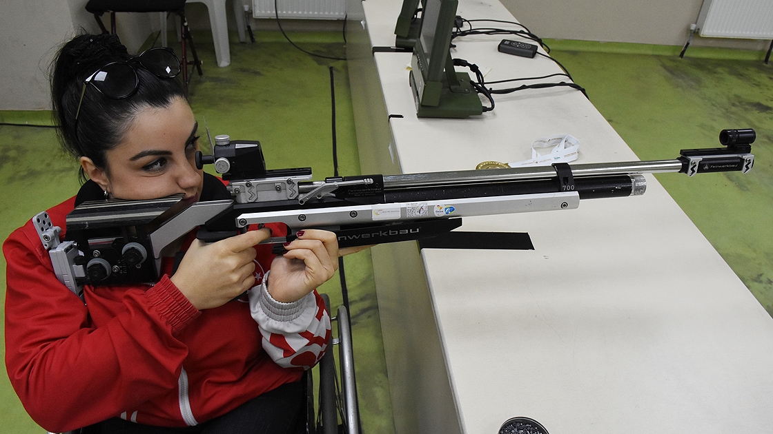 Birleşik Arap Emirlikleri'nde düzenlenen Para Atıcılık Dünya Kupası'nda takım arkadaşının tüfeğiyle atış yapan milli sporcu Çağla Atakal, hem altın madalya kazanmanın hem de 2020 Paralimpik Oyunları'na kota almanın sevincini yaşıyor.