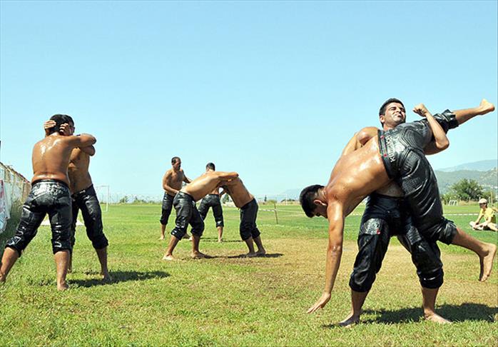 Kumluca Belediyesi'nin desteğiyle güreş yapan pehlivanlar, Edirne'de bu yıl 2-8 Temmuz tarihlerinde gerçekleştirilecek 651. Kırkpınar güreşleri için yaklaşık iki aydır ilçe stadında çalışma yapıyor.