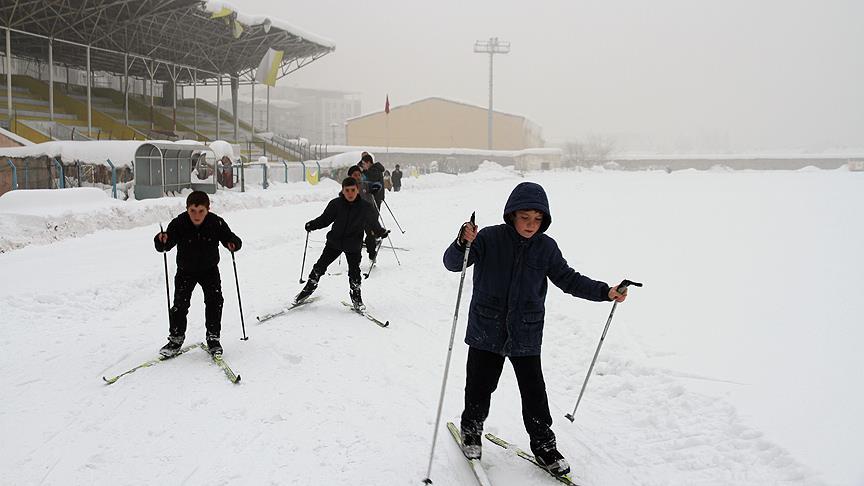 Muş Şehir Stadı, yoğun kar yağışının ardından yapılan düzenlemelerle kayaklı koşu pisti olarak kullanılmaya başlandı.