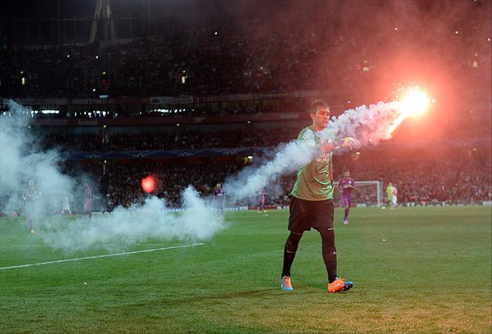 UEFA, Şampiyonlar Ligi'nde Arsenal ile oynanan maçta tribünlerden sahaya atılan meşaleler nedeniyle sarı-kırmızılı kulübe soruşturma açtı.