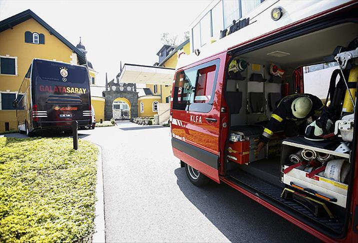 Sarı-kırmızılı ekibin Velden'de konakladığı Falkensteiner Schlosshotel'in öğlen saatlerinde yangın alarmı çalışırken, kısa sürede itfaiye ekipleri gelerek incelemelerde bulundu.
