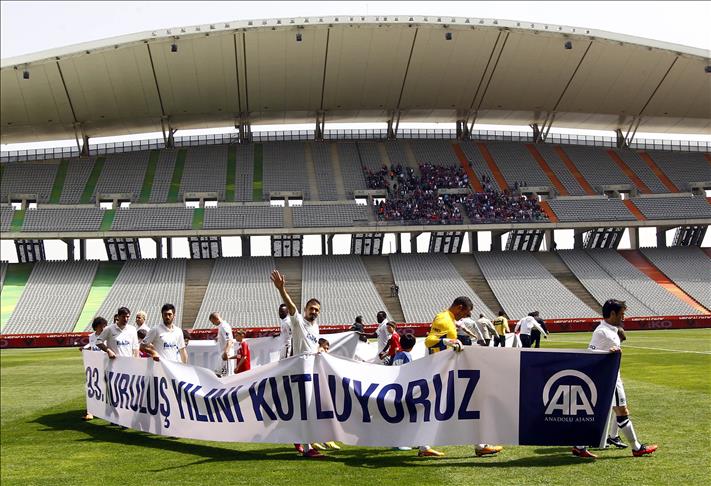 İstanbul Büyükşehir Belediyespor, Spor Toto Süper Lig'in 28. haftasında oynadığı Kardemir Karabükspor maçında sahaya, Anadolu Ajansı'nın 93. kuruluş yıl dönümünü kutlayan pankartla çıktı.