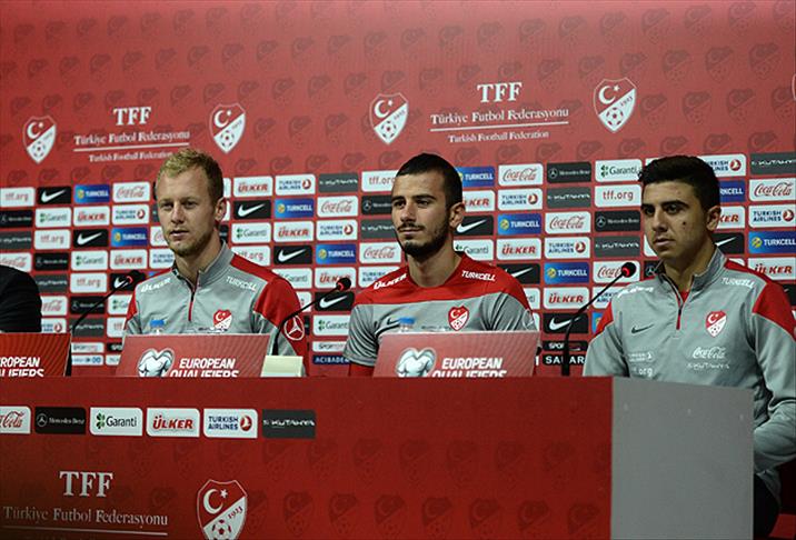 Milli oyuncular Semih Kaya, Oğuzhan Özyakup ve Ozan Tufan, Çek Cumhuriyeti maçıyla ilgili Riva'daki TFF Milli Takımlar Hasan Doğan Kamp ve Eğitim Tesisleri'nde düzenlenen basın toplantısına katıldı.