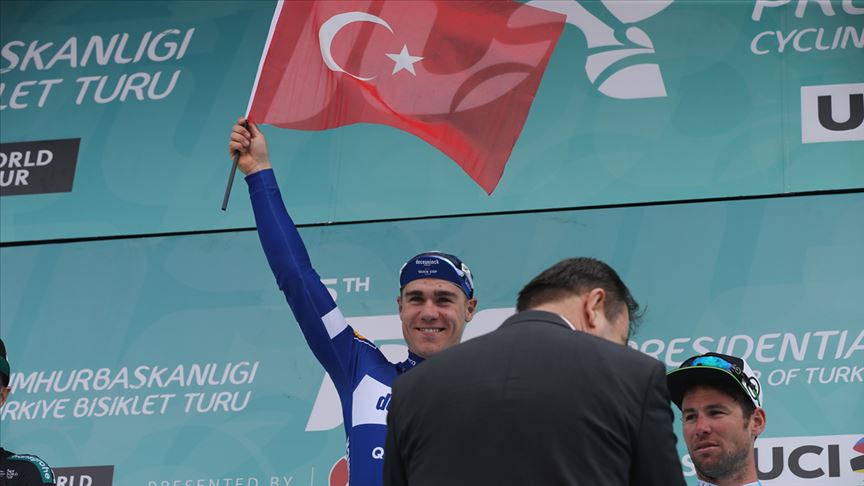 Hollandalı sporcusu Fabio Jakobsen, yarışın ardından podyuma Türk bayrağı ile çıktı.