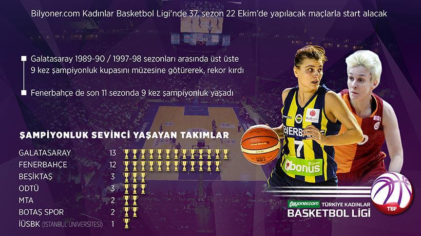 Bilyoner.com Kadınlar Basketbol Ligi'nde 13 kez mutlu sona ulaşan Galatasaray, en fazla şampiyonluk yaşayan takım durumunda bulunuyor.