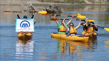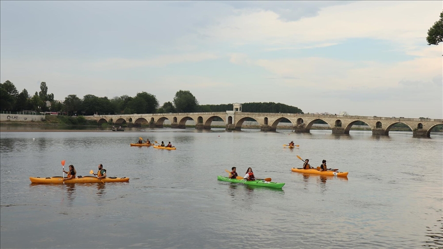 Kano turuna Meriç Köprüsü civarından başlayan sporcular, bir süre kürek çektikten sonra nehrin birleştiği noktadan Tunca'ya geçiş yaptı.