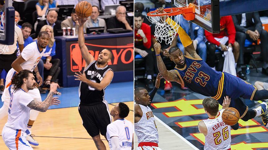 San Antonio Spurs, konuk olduğu Oklahoma City Thunder'ı 100-96 yenerek serisinde 2-1 üstünlük yakaladı. Cleveland Cavaliers, Atlanta Hawks'ı 121-108'le geçerek seride durumu 3-0 yaptı.