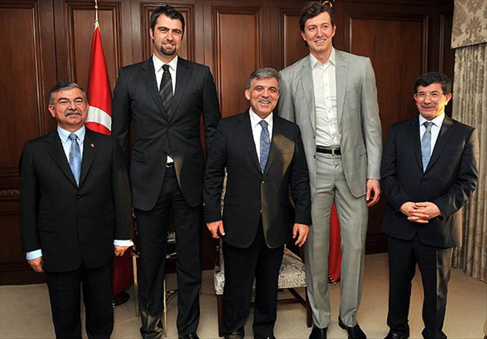 Türk heyetinin konakladığı Four Seasons Oteli'nde yapılan görüşmede, Cumhurbaşkanı Abdullah Gül, Dışişleri Bakanı Ahmet Davutoğlu ve Milli Savunma Bakanı İsmet Yılmaz ile Türk basketbolcular Ömer Aşık ve Mehmet Okur, birlikte toplu fotoğraf çektirdi.