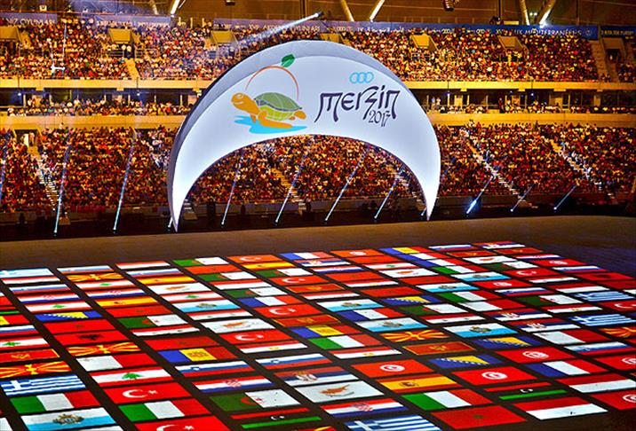 Sporculardan oluşan Akdeniz kortejinin geçişiyle başlayan kapanışta, 17. Akdeniz Oyunları'nın ev sahibi Mersin ile bir sonraki oyunlara ev sahipliği yapacak İspanya'nın Tarragona şehri arasında bayrak devir teslim töreni yapıldı.