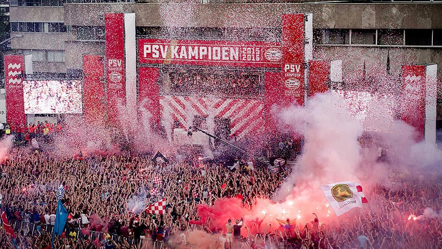 Hollanda Birinci Futbol Ligi'nde (Eredivisie) dün tamamlanan sezonun son haftasında lider Ajax’ı geçerek şampiyonluğa ulaşan PSV’nin düzenlediği resmi kutlamaya, 100 bine yakın taraftar katıldı.
