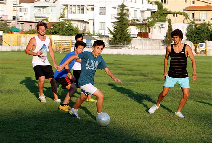 İtalya Birinci Futbol Ligi (Serie A) takımlarından Roma'da oynayan Salih Uçan, tatil için geldiği memleketi Marmaris'te çocuklarla maç yaptı.