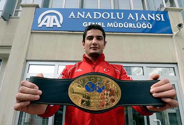 Gürcistan'da gerçekleştirilen Avrupa Güreş Şampiyonası'nda serbest stil 120 kiloda altın madalya kazanan milli güreşçi Taha Akgül, milli takım ve ASKİ Spor Kulübü antrenörü Abdullah Çakmar ile Anadolu Ajansı Spor Haberleri Editörlüğünü ziyaret etti.