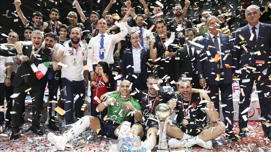 Halkbank'a kupayı Spor Toto Teşkilat Başkanı Bünyamin Bozgeyik ve Türkiye Voleybol Federasyonu (TVF) Başkanı Mehmet Akif Üstündağ birlikte verdi.