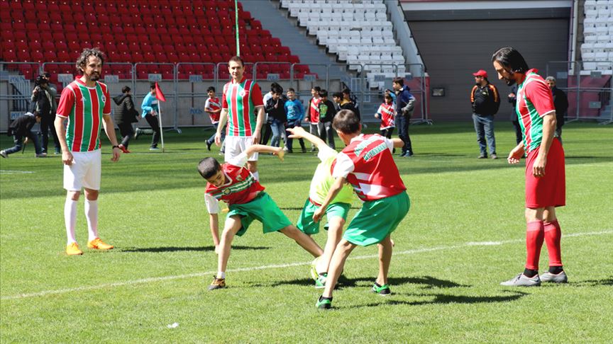 Diyarbakır'da eski milli futbolcular, öğrencilerle gösteri maçında karşılaştı.