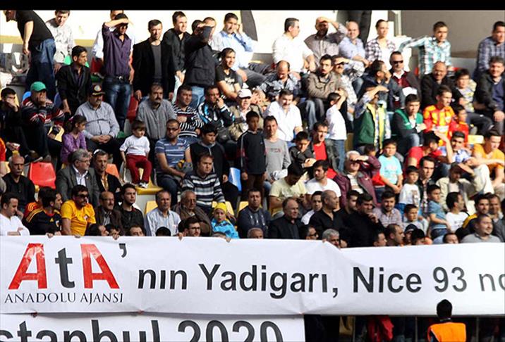 Kayserispor- Sanica Boru Elazığspor maçda bir grup taraftar ''Atanın yadigarı nice 93. yıllara'' yazılı pankart açarak Anadolu Ajansı'nın 93. yıl dönümünü kutladı.