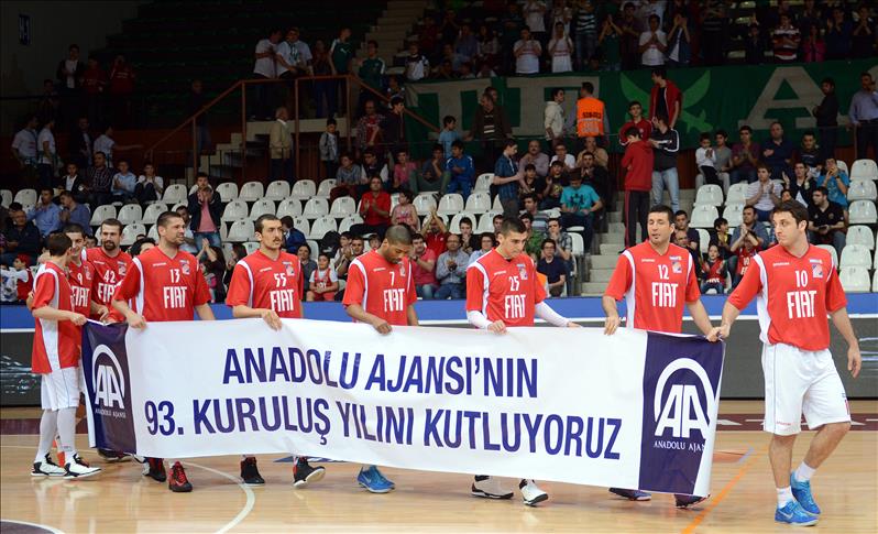 Beko Basketbol Ligi'nde TOFAŞ, sahaya "Anadolu Ajansı'nın 93'üncü kuruluş yıl dönümünü kutluyoruz" yazılı pankartla çıktı.