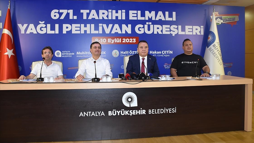 Büyükşehir Belediyesi hizmet binasındaki toplantıda konuşan Başkan Böcek, 671. Tarihi Elmalı Yağlı Güreşleri'nin 8-10 Eylül tarihlerinde gerçekleştirileceğini hatırlattı.