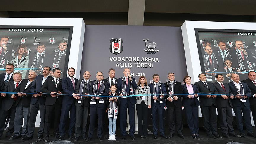 Vodafone Arena'nın açılış kurdelesini Cumhurbaşkanı Recep Tayyip Erdoğan ve Başbakan Ahmet Davutoğlu'nun yanı sıra diğer katılımcılar birlikte kesti.