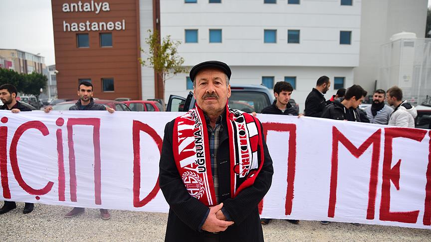 Antalya'da geçirdiği trafik kazası sonucu yoğun bakım ünitesinde yaşam mücadelesi veren 19 yaşındaki genç için Antalyaspor taraftarları hastane önünde pankart açtı.