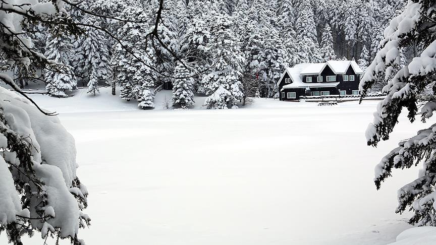 Bolu'da etkili olan kar yağışıyla Gölcük Tabiat Parkı beyaza süründü.