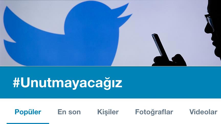 Türkiye'deki Twitter kullanıcılarının gündeminde ilk sırada bulunan "#Unutmayacağız" etiketi, dünya trend topic listesinde de üst sıralarda yer alıyor.