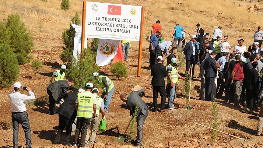 Mardin'de Fetullahçı Terör Örgütü'nün (FETÖ) 15 Temmuz darbe girişimi sırasında şehit düşenlerin anısına hatıra ormanı oluşturuldu.