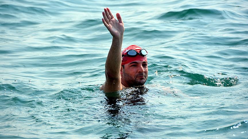 Eski milli yüzücü Alper Sunaçoğlu, Fetullahçı Terör Örgütü'nün (FETÖ) darbe girişimini sırasında şehit olan vatandaşlar için 52,1 kilometrelik Didim-Bodrum arasını yüzmek için kulaç atmaya başladı.
