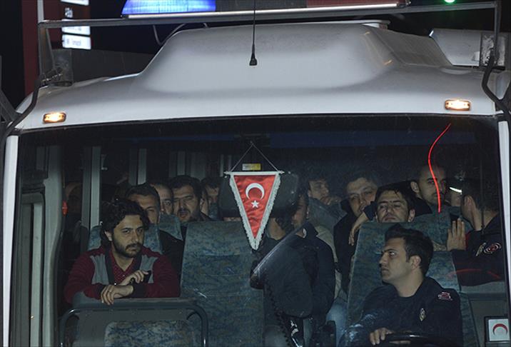 İstanbul Cumhuriyet Başsavcılığı Terör ve Örgütlü Suçlar Bürosu tarafından "suç örgütü kurmak", "örgüt üyesi olmak", "siyasal casusluk", "resmi evrakta sahtecilik", "kişisel verileri usulsüz kaydetme", "bilgisayar verilerini silme'' suçlarından gözaltına alınan 29 polis, emniyetteki işlemlerinin ardından yoğun güvenilik önlemleri altında Çevik Kuvvet'e ait 3 minibüs ile Eyüp Devlet Hastanesi'ne getirildi.