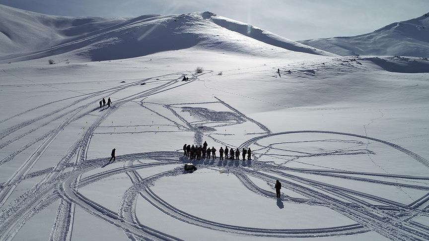 Ekipler, senaryo gereği yaralı halde kar altından çıkardıkları vatandaşları motorlu kar aracıyla ambulansa ulaştırdı.