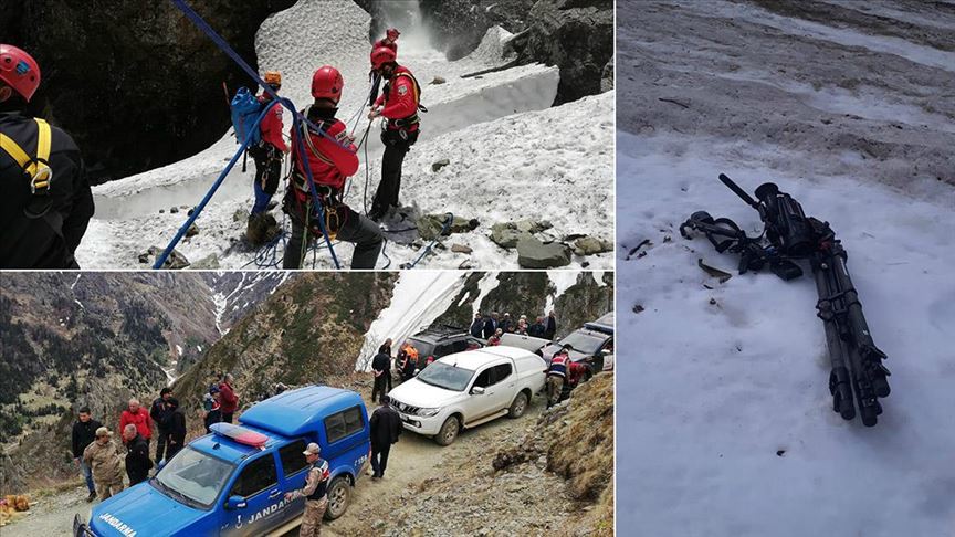 Çalışmalar sırasında dağcılar, Nişancı'nın düştüğü yerden yaklaşık 60 metre aşağıda kara saplanan kamerası ve tripodunu bulunduğu yerden aldı.