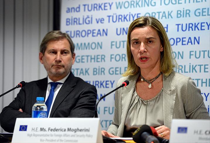 AB Dış İlişkiler ve Güvenlik Politikası Yüksek Temsilcisi Federica Mogherini, Komşuluk Politikası ve Genişleme Müzakerelerinden Sorumlu AB Komiseri Johannes Hahn ile İnsani Yardım ve Kriz Yönetiminden Sorumlu AB Komiseri Hristos Stilianidis, Türkiye'deki temaslarının ardından AB binasında basın toplantısı düzenledi.