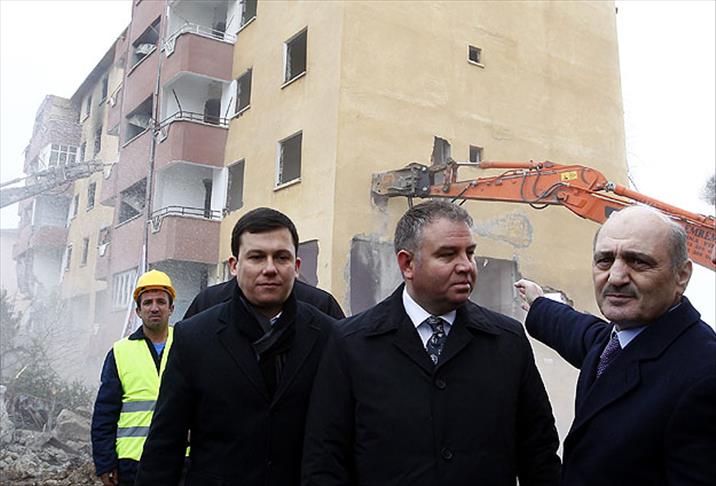 Sincan'da Osmanlı Mahallesi Doğankent Yapı Kooperatifi'ndeki 5 blok, taşıdığı yüksek risk nedeniyle kentsel dönüşüm kapsamında törenle yıkıldı.