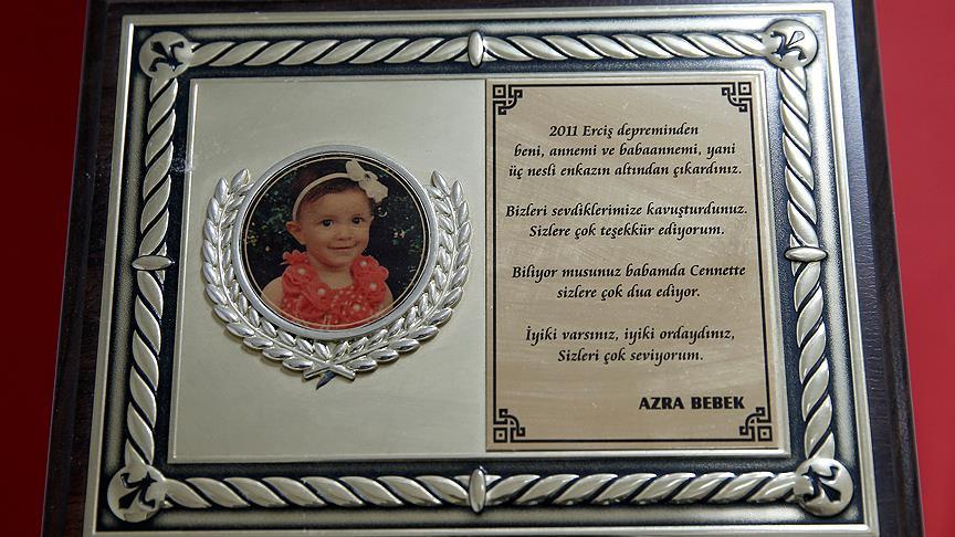 Afet ve Acil Durum Yönetimi Başkanlığı (AFAD) İzmir Müdürlüğü Arama Kurtarma Birliği'nde görev yapan ekip, 23 Ekim 2011'de Van depreminde Erciş ilçesinde yıkılan 7 katlı binanın enkazından 47 saat sonra canlı olarak çıkardığı ve "umudun adı" olarak hafızalara kazınan "Azra bebeği" unutamıyor.