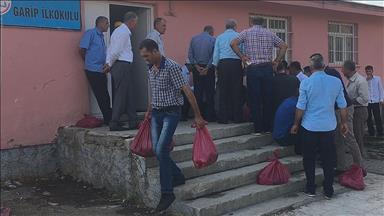 Türkiye Diyanet Vakfının kurban dağtım ekibi huzurunda Cevizcan ve Sar-i Pul'da belirlenen ihtiyaç sahibi ailelere, önceden dağıtılan kartlar karşılığında 3,5 kilogram ağırlığındaki kurban eti paketleri teslim edildi.