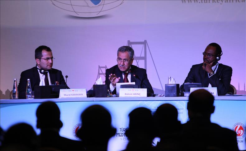 Başbakan Yardımcısı Bülent Arınç, Türkiye-Afrika Medya Forumu'nun kapanışında yaptığı konuşmada, Afrika'nın zengin bir kıta olduğunu, kendi kaynaklarını yeterince kullanabilirse, çalışkan iş gücüne istihdam sağlayabilirse, yönetimlerde istikrarlı bir siyaset takip edebilirse, darbelerden kurtulup demokrasinin bütün güzelliklerine sahip olabileceğini söyledi.