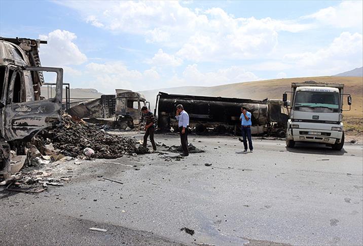 Ağrı'nın Doğubayazıt ile Van'ın Çaldıran ilçeleri arasında bulunan Tendürek Geçidi'nde yol kesen terör örgütü PKK üyeleri, 5 tırı durdurdu.