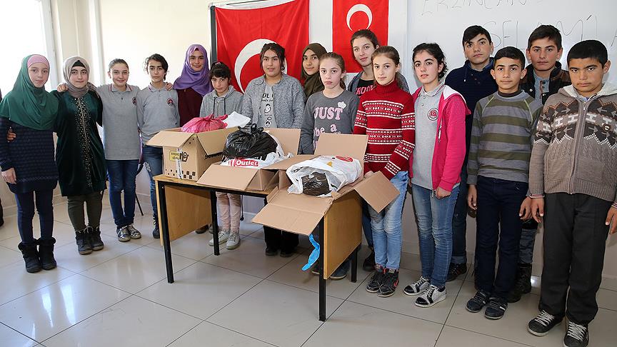 Cumhurbaşkanı Recep Tayyip Erdoğan'ın talimatı, Başbakan Binali Yıldırım'ın koordinasyonuyla Ukrayna'dan getirilerek Erzincan'ın Üzümlü ilçesinde iskan edilen Ahıska Türk'ü ailelerin ilkokulda eğitim gören çocukları, Zeytin Dalı Harekatı'nda görev alan Mehmetçikleri unutmadı.