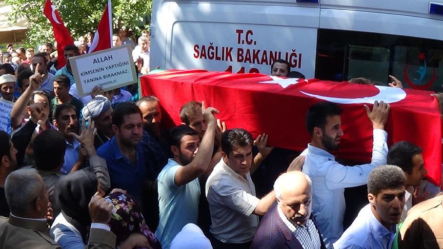 Cenaze töreninden önce ilçe merkezinden Budak'ın Beşevler Mahallesi'ndeki evine yürüyen vatandaşlar, slogan atarak terör örgütü PKK'yı lanetledi.
