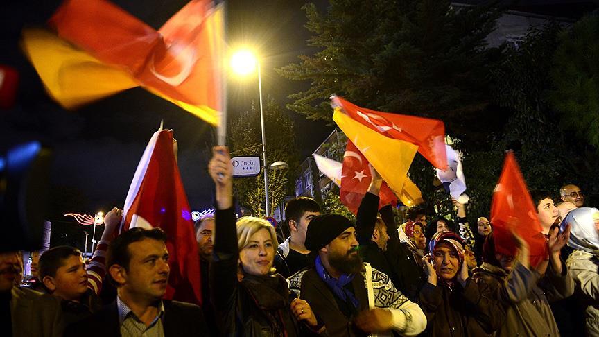 1 Kasım milletvekili genel seçimlerinin resmi olmayan sonuçlarına göre, oyların yüzde 49.38'ini alarak tek başına iktidar olmayı garantileyen AK Parti'de büyük sevinç yaşanıyor.
