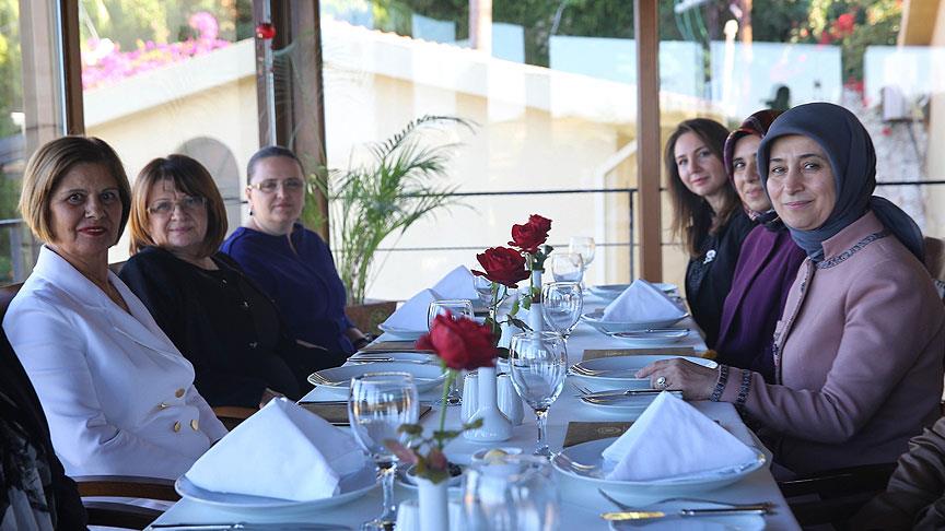 Başbakan Ahmet Davutoğlu'nun eşi Sare Davutoğlu, Kuzey Kıbrıs Türk Cumhuriyeti (KKTC) Cumhurbaşkanı Mustafa Akıncı'nın eşi Meral Akıncı ve KKTC Başbakanı Ömer Kalyoncu'nun eşi Özay Kalyoncu ile bir araya geldi.