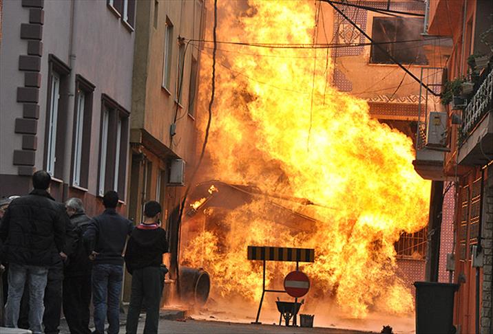 Borudan sızan gazın alev alması sonucu yangın çıktı. Bunun üzerine çevredekilerin ihbarıyla olay yerine çok sayıda itfaiye ekibi sevk edildi.